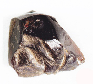 Stradonice (okr. Beroun), medově hnědé surové sklo a zIomky náramků ze skla téže barvy, NM Praha