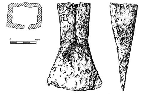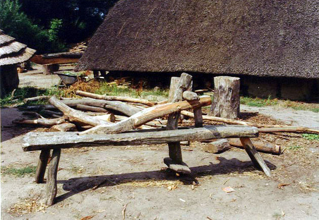 sekery různých tvarů a velikostí, pily, pořízy, hoblíky, dláta, rašple, hákovité nože, pravděpodobně i soustruh (nádoba z Brno-Maloměřice).