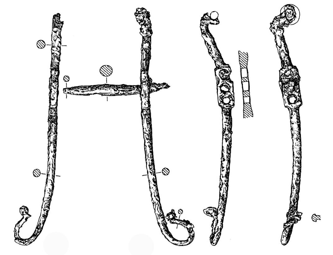 Bezdědovice: Součástí koňského postroje jsou zachovaná (menší a větší) dvě železná udidla (uzdy) s postranicemi. Vedle nejběžnějších kroužkových udidel, která převažují i v celé době laténské (např. v hrobech s vozy, dále i v hromadných nálezech železných předmětu a i z oppid) a jejichž vývoj lze sledovat již od doby halštatské (8. - 7. stol. př. n. I.) až do počátku doby římské, se objevují i méně užívané uzdy s bočnicemi tvaru omega, které jsou zastoupeny např. v pozdně laténském nálezovém inventáři z oppida Manching, Starého Hradiska. Dalším typem jsou pak uzdy „trácké“, které byly užívány a rozšířeny především na území dnešního Bulharska.
