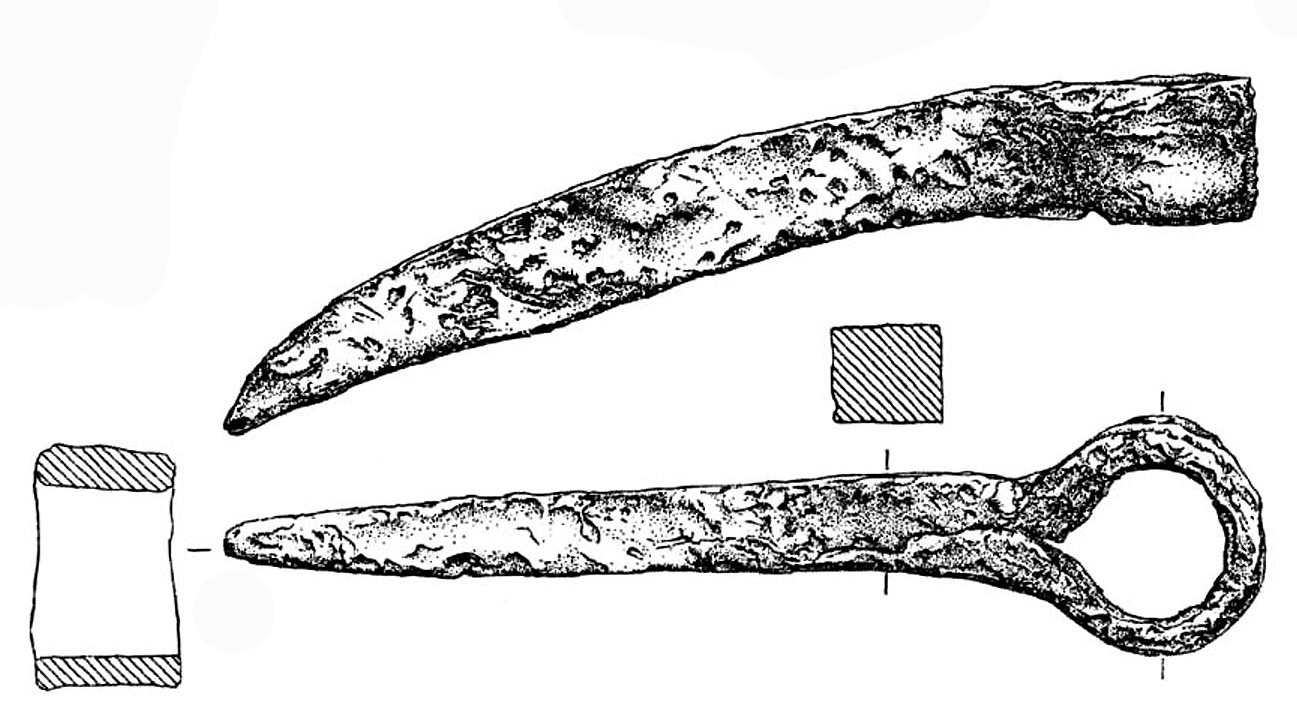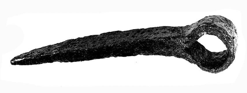 Železný masivní a špičatý kopáč (Špičák) s příčným otvorem pro topůrko v týlní části a s tělem čtvercového průřezu má délku 270 mm a hmotnost 1138 gramů. Pro tento tvar nenacházíme v soudobých sídlištích a oppidech přímé analogie. Jeho výskyt na oppidech Závist a Stradonice zmiňují P. Drda a A. Rybová. Špičáky (kopáče) s tulejkou pro nasazení topůrka - dlouhé dřevěné násady - uvádí z oppida Manching G. Jacobi, které podle něho sloužily více v domácnosti a v sídlištích při hloubení jam, příkopů a pří kypření ztvrdlé půdy, než při samotných polních pracech. Mimo jednoduché kopáče ze sídlišť doby laténské (Idriab. Bača a Karlstein) se v pozdní době laténské objevují i rovné nebo zahnuté Špičáky s příčnými otvory pro násadu (oppidum Essalois, Dép. Loiře a Sanzeno v Tyrolsku), z nichž se v době římské vyvinuly nejrůznější ploché motyky, kladiva a jiné kombinované motyky.