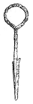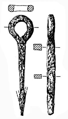 Závlačka - Součástí zámku je i pérová závlačka - západka s očkem, o délce 140 mm a se dvěma péry na odlomeném konci, nález Bězdědovice