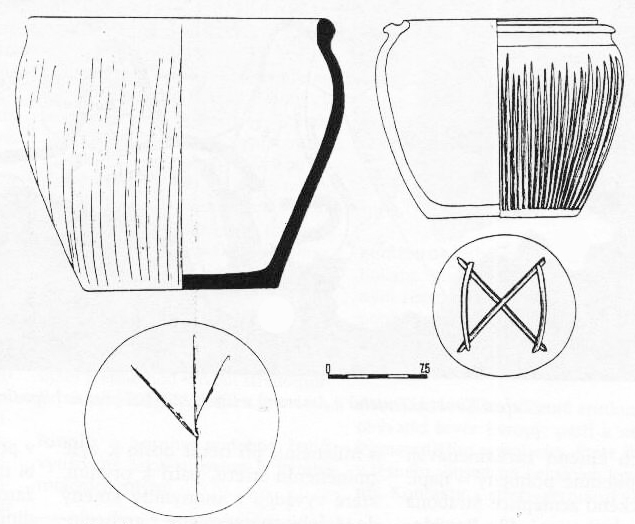 Staré Hradisko - svisle rýhovaná tuhová situla se značkami na dně
