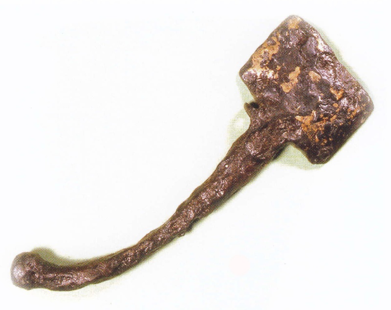 Mšecké Žehrovice - železný zákolník s destičkovitou, bronzem potaženou hlavou