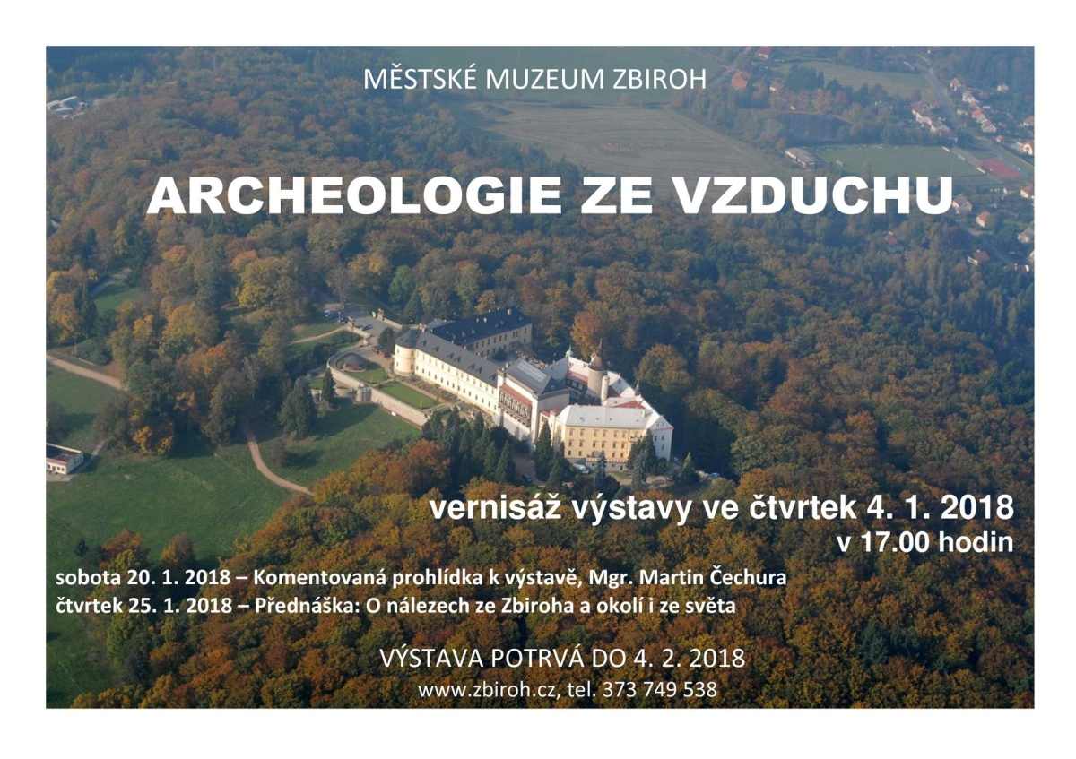 V roce 2018 budeme v městském muzeu zahajovat vernisáží již ve čtvrtek 4. 1. 2018 od 17.00 hodin výstavu Archeologie ze vzduchu - letecké výsledky archeologie na Rokycansku a Plzeňsku. Letecká archeologie patří mezi méně známé, avšak velmi efektivní metody archeologického výzkum. Pomocí leteckého pozorování a fotografického snímkování jsou na základě půdních, vegetačních, stínových a jiných příznaků vyhledávány, identifikovány a evidovány archeologické objekty. Rovněž se zabývá vyhodnocením leteckých snímků, které nebyly pořízeny pro archeologické účely, přičemž vychází z metod vojenského leteckého průzkumu. Výstava představí její možnosti, způsoby práce v letadle a i při vyhodnocování snímků. Na různých typech lokalit budou představeny nejvýznamnější výsledky, ke kterým pracovníci Západočeského muzea v Plzni v posledních letech dospěli. Výstava bude doplněna výběrem nových archeologických nálezů. Pro doplnění výstavy v sobotu 20. ledna ve 14.00 připravujeme komentovanou prohlídku, kterou osobně provede její autor Mgr. Martin Čechura, archeolog Západočeského muzea v Plzni, který zajímavě a netradičně seznámí s jednotlivými lokalitami a nálezy. Ve čtvrtek 25. ledna doplní výstavu besedou o nálezech na Zbirožsku a v okolí i ze světa.
